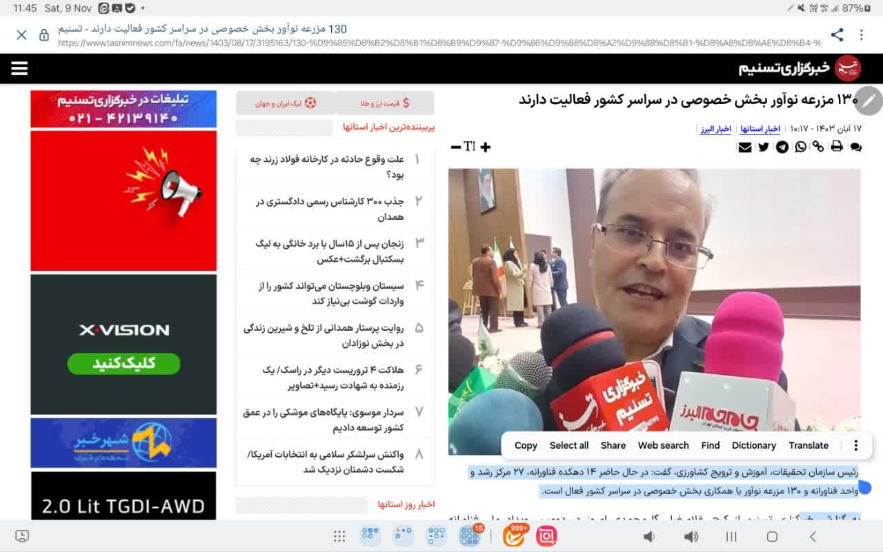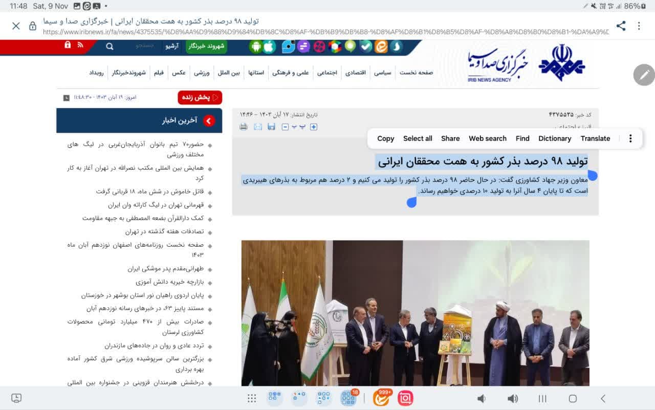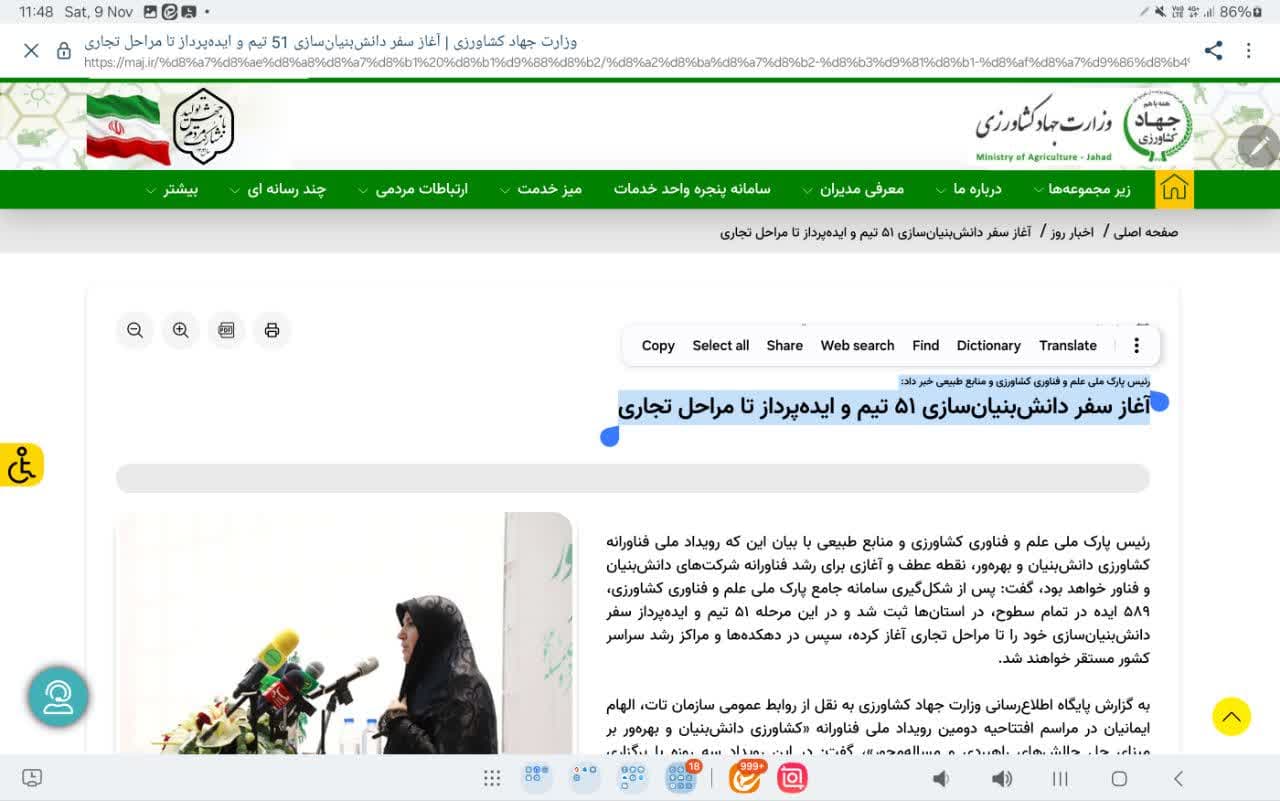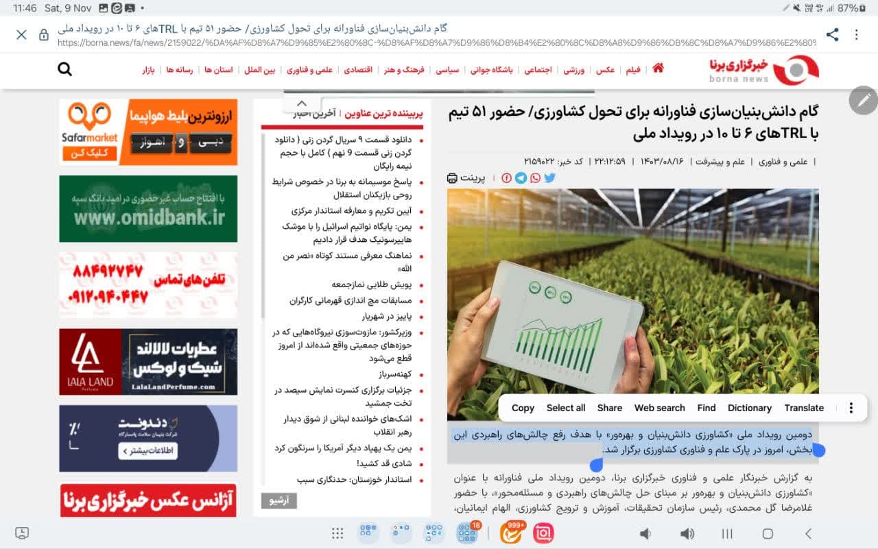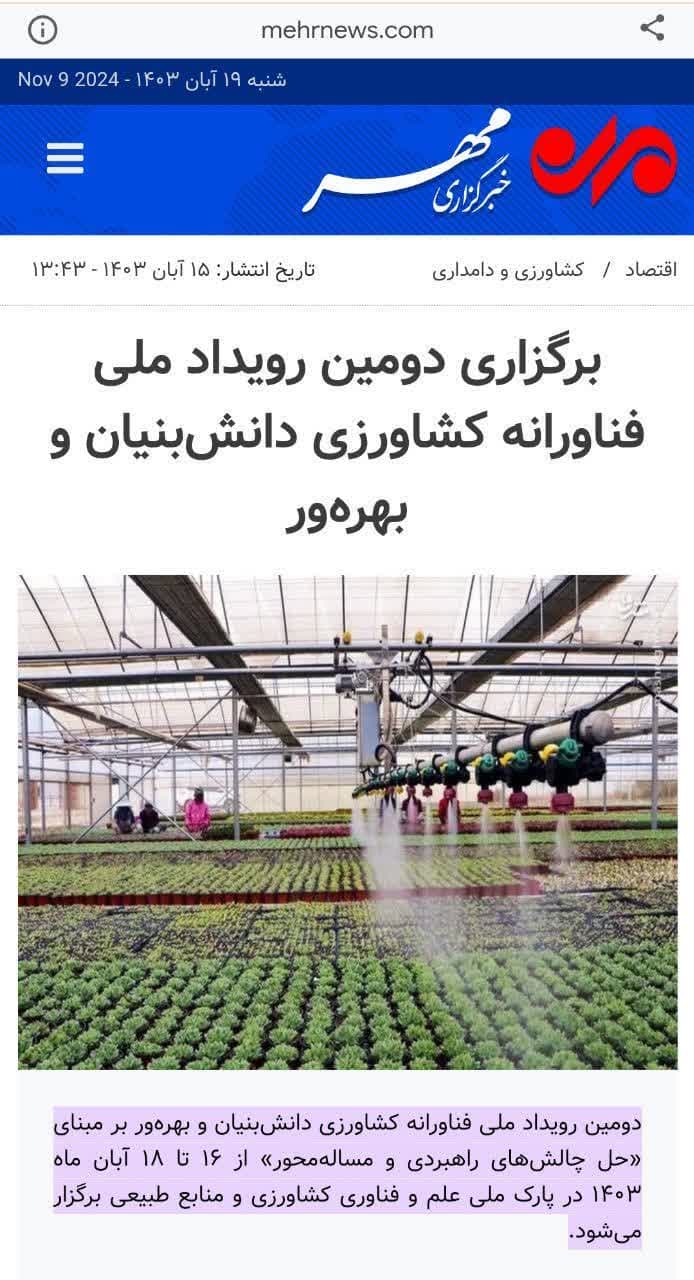 انعکاس خبری - برگزاری دومین رویداد مای فناورانه کشاورزی دانش بنیان و بهره ور در پارک ملی علم و فناوری کشاورزی و منابع طبیعی